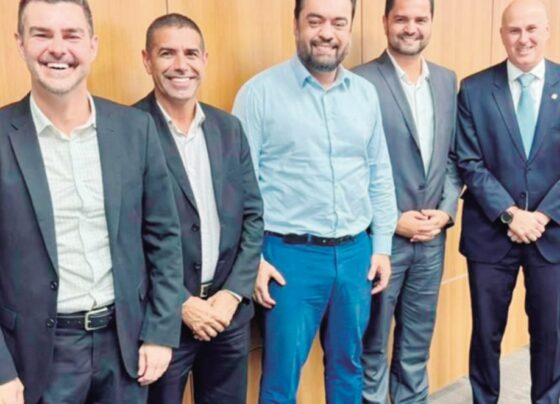 O prefeito eleito de Resende, Tande Vieira, o atual prefeito, Diogo Balieiro, o vice-prefeito eleito, Davi do Esporte, e o…