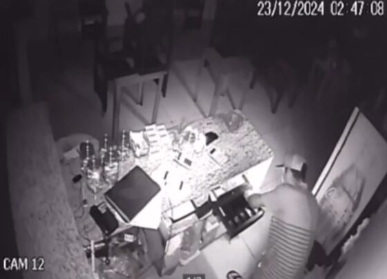 Uma câmera flagrou o momento em que um ladrão invade o restaurante Simpatia, na Avenida Getúlio Vargas, no Centro de…