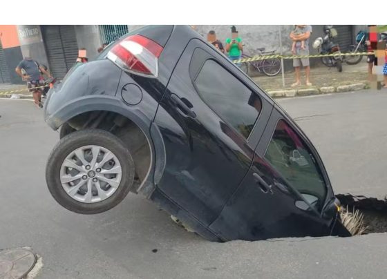 Cidades Asfalto cede e carro cai em cratera em Resende Parte do asfalto de um trecho cedeu e um veículo…