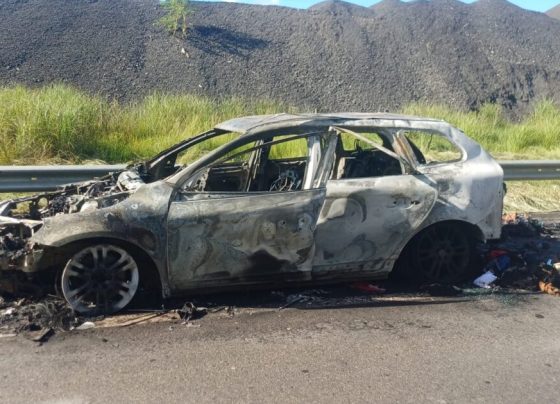 Veículo pega fogo na Dutra e é totalmente destruído em Piraí