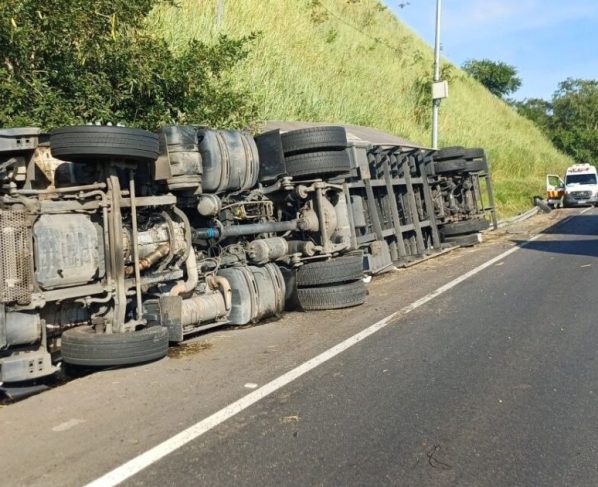 Equipes da concessionária responsável pela rodovia foram acionadas, e um guincho pesado já está a caminho para realizar o destombamento e retirada da carreta do local. Até a conclusão do serviço, motoristas devem redobrar a atenção ao passar pelo trecho.