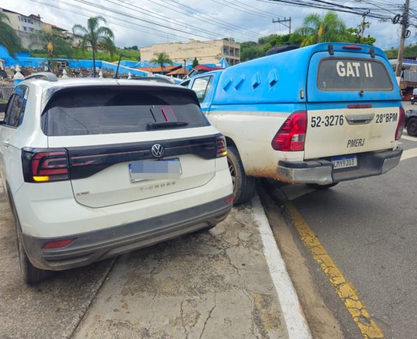 Policiais militares prenderam na tarde de segunda-feira (26), no Centro de Barra Mansa, um casal dentro de um carro clonado. De acordo com a PM, o T-Cross branco foi roubado em março de 2023, em São João de Meriti.