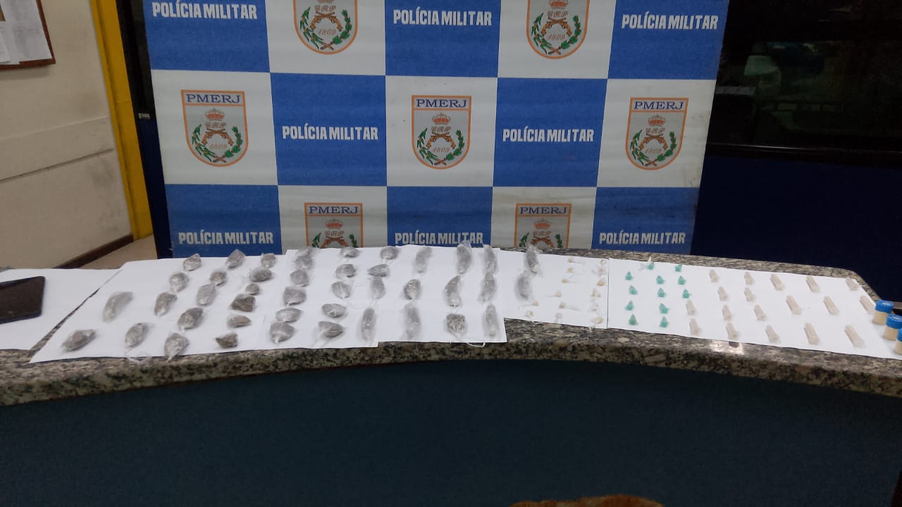 Dentro da residência, também foi encontrada uma jovem de 21 anos. Questionada, ela entregou espontaneamente quatro pinos de cocaína e duas pedras de crack que escondia nas partes íntimas. A jovem relatou aos policiais que é namorada do suspeito e que teria sido orientada por ele a guardar a droga por acreditar que não seria revistada.