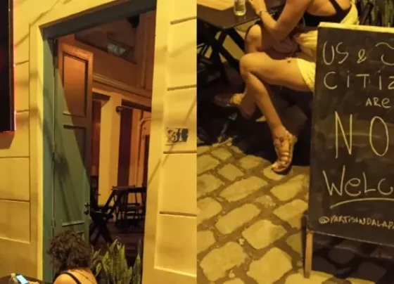 “Cidadãos dos EUA e de Israel não são bem-vindos”, diz placa em bar – Foto: Divulgação Texto (com as citações…