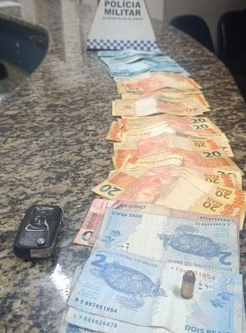 Durante a revista pessoal, nada de ilícito foi encontrado com um dos envolvidos, que utilizava tornozeleira eletrônica. Com o outro, foi localizada uma quantia em dinheiro. Já na busca no interior do veículo, os policiais encontraram uma munição calibre .380 no assoalho, ao lado do motorista.