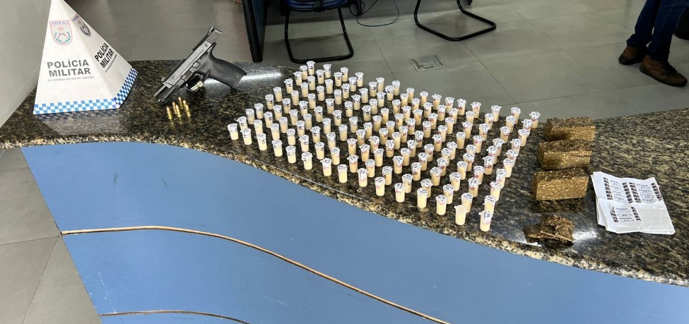 Em ação contra o tráfico de drogas na comunidade da Sapinhatuba I, que tinha como objetivo averiguar informações encaminhadas pelo Disque Denúncia Angra (0300 253 1177), agentes do Serviço Reservado do 33º BPM (Batalhão de Polícia Militar) apreenderam, neste sábado (17), uma pistola, um carregador, seis munições, 150 pinos de cocaína e quatro tabletes de maconha. Houve troca de tiros, mas ninguém foi preso.