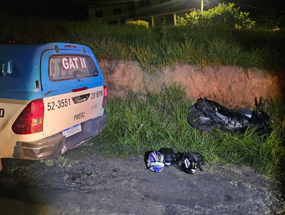 Segundo a PM, no momento em que foi abordada, a dupla estava em outra moto, modelo CG 160 Start. Eles não obedeceram à ordem de parada e tentaram fugir, mas acabou batendo na viatura policial e caindo. No entanto, se levantaram e tentaram fugir mais uma vez. Um dos suspeitos, de acordo com a PM, colocou a mão na cintura, dando a entender que iria sacar o revólver que portava, o que fez um dos policiais atirar com um fuzil, sem atingi-lo. Ele gritou “perdi”, soltou a arma e a dupla se rendeu.
