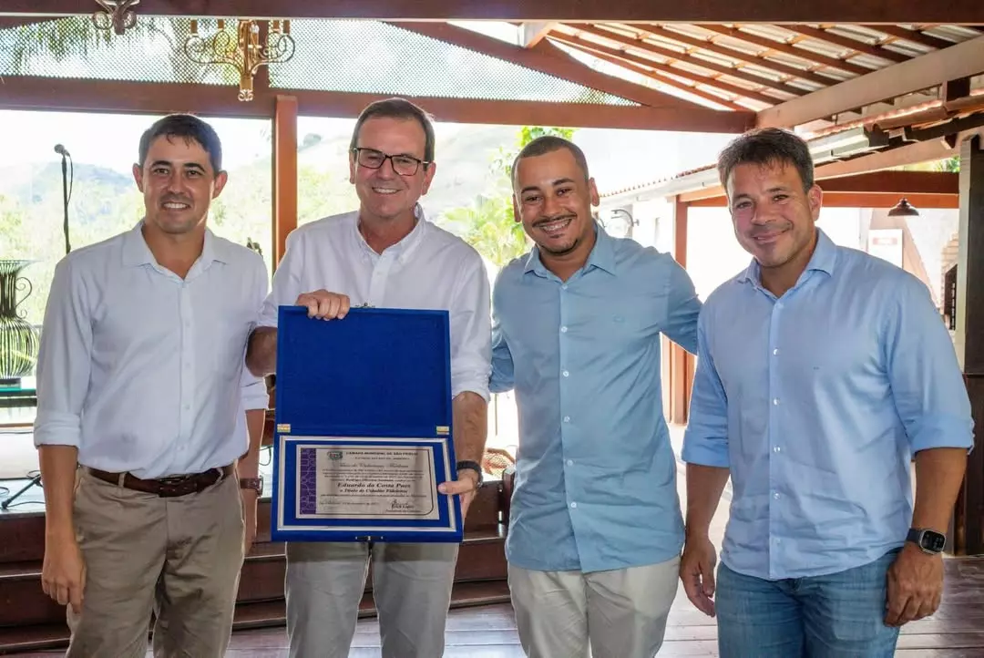 Em Cambuci, Paes esteve acompanhado do deputado federal Murillo Gouvea (União-RJ) e do presidente da Câmara do Rio, Carlo Caiado (PSD). Por lá, recebeu uma Moção de Aplausos concedida pela presidente da Câmara municipal, Leila Velasco (PP).