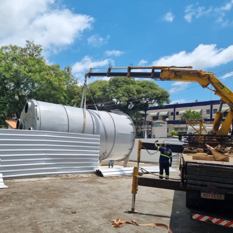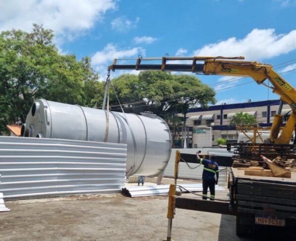 Volta Redonda – As obras da estação de tratamento de esgoto do Hospital São João Batista (HSJB), em Volta Redonda, avançaram com a chegada dos tanques reatores, nesta semana. O investimento de pouco mais de R$ 2 milhões começou em julho e a previsão é que a estação e o novo anexo do hospital estejam operando em 2025.