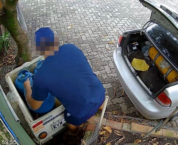 Após perceber o furto mais recente, a mulher impediu que o suspeito deixasse o local e acionou o Ciosp (Centro Integrado de Operações de Segurança Pública), que mobilizou uma equipe da Guarda Municipal. Durante a tentativa de conter o homem, a empresária acabou ficando ferida, com lesões no pescoço e nos braços provocadas pelo suspeito. Quando os guardas municipais chegaram ao local, funcionários informaram que o homem havia se trancado no banheiro do estabelecimento para tentar evitar a prisão. O homem foi conduzido para a delegacia, onde foi autuado em flagrante pelo crime de roubo, por ter causado ferimentos na vítima durante a tentativa de fuga. Os botijões subtraídos na quarta-feira foram recuperados e devolvidos à proprietária do estabelecimento. O veículo utilizado pelo suspeito para praticar o furto foi apreendido e levado para a delegacia.