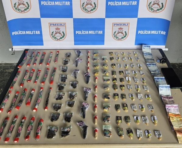 A ação foi do GAT 1 (Grupamento de Ações Táticas) na verificação de uma denúncia de tráfico. Os agentes apreenderam 17 pinos de cocaína, 38 embalagens de maconha, 51 pedras de crack, 13 comprimidos de ecstasy e R$ R$ 46 em espécie.