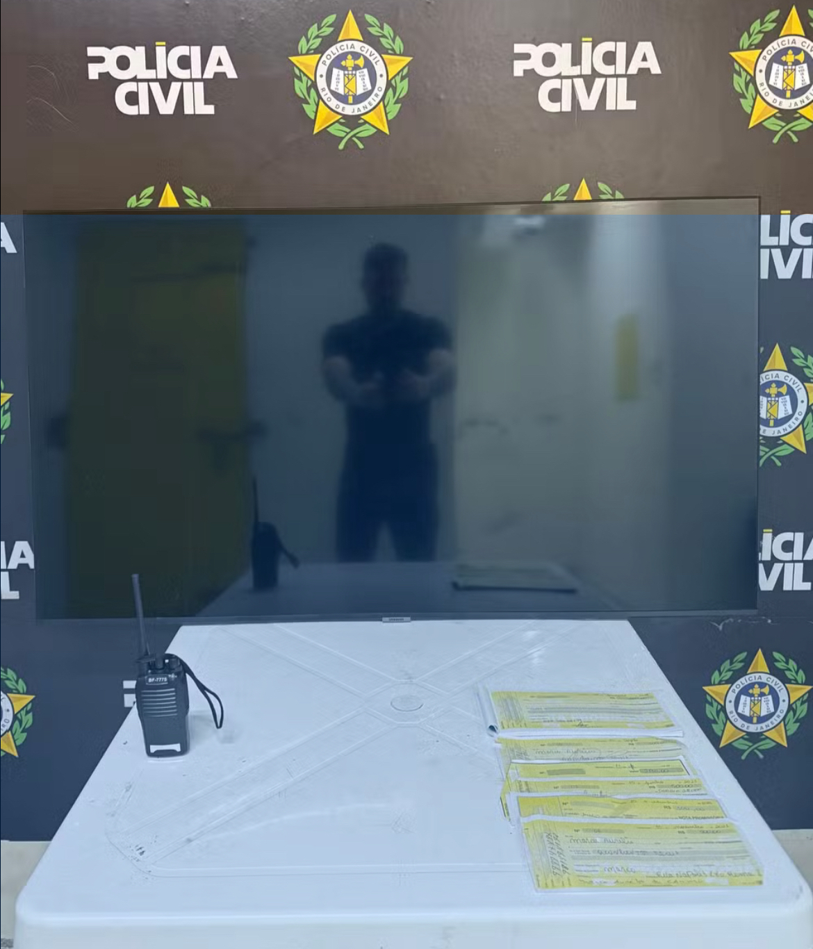 A Polícia Civil informou que o homem foi preso em flagrante. Durante buscas na casa do suspeito, a televisão subtraída foi apreendida, além de diversas notas promissórias.