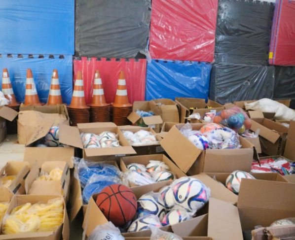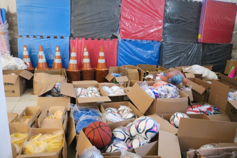Entre os tipos de material esportivo estão bolas de iniciação do número 3 ao 14; mini traves de futebol; mini tabelas de basquete; tapetes de E.V.A; bolas de futebol de campo; escadas de agilidade; bolas de vôlei; bolas de futsal/massa; bolas de handebol; bolas de basquete; bolas de rugby; medalhas de metal de participação; e cones.