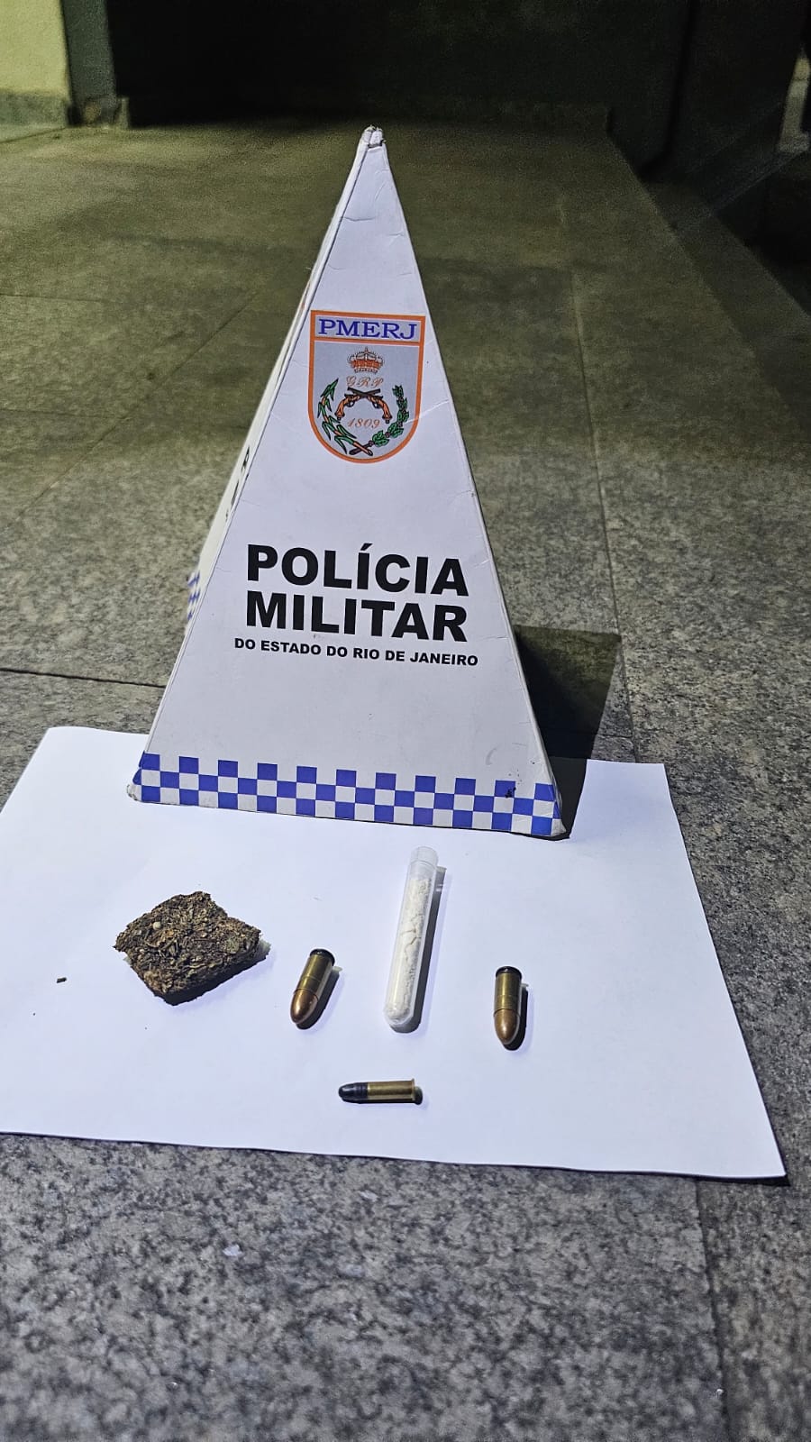 Durante as buscas no imóvel onde o suspeito se encontrava, os policiais localizaram uma caneta contendo cocaína, uma porção de maconha, duas munições de calibre 9 mm e uma munição de calibre .22. O suspeito, de 21 anos, foi encaminhado à 107ª DP, onde permaneceu preso à disposição da Justiça e a ocorrência registrada pelos crimes de posse de entorpecente para consumo pessoal e posse ilegal de munição.