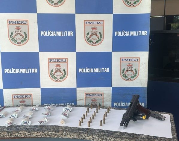 Policiais militares apreenderam uma arma no fim da manhã desta sexta-feira (17) em Barra Mansa. A ação foi no bairro Cotiara e teve também a apreensão de 13 pinos de cocaína e nove trouxinhas de maconha.