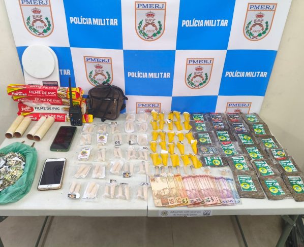 Até o momento desta publicação, a quantidade de entorpecentes apreendidos não havia sido contabilizada. A ocorrência ainda não havia sido concluída na delegacia de polícia, no Aterrado. (Foto: Polícia Militar)