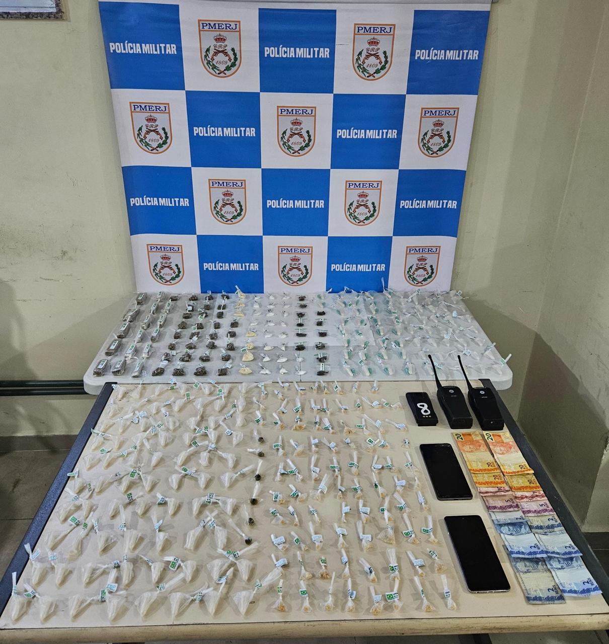 Policiais militares detiveram dois suspeitos de tráfico de drogas no fim da manhã desta quinta-feira (14), na Rua 6, no bairro Vale Verde, em Volta Redonda. Drogas foram apreendidas durante a ação.