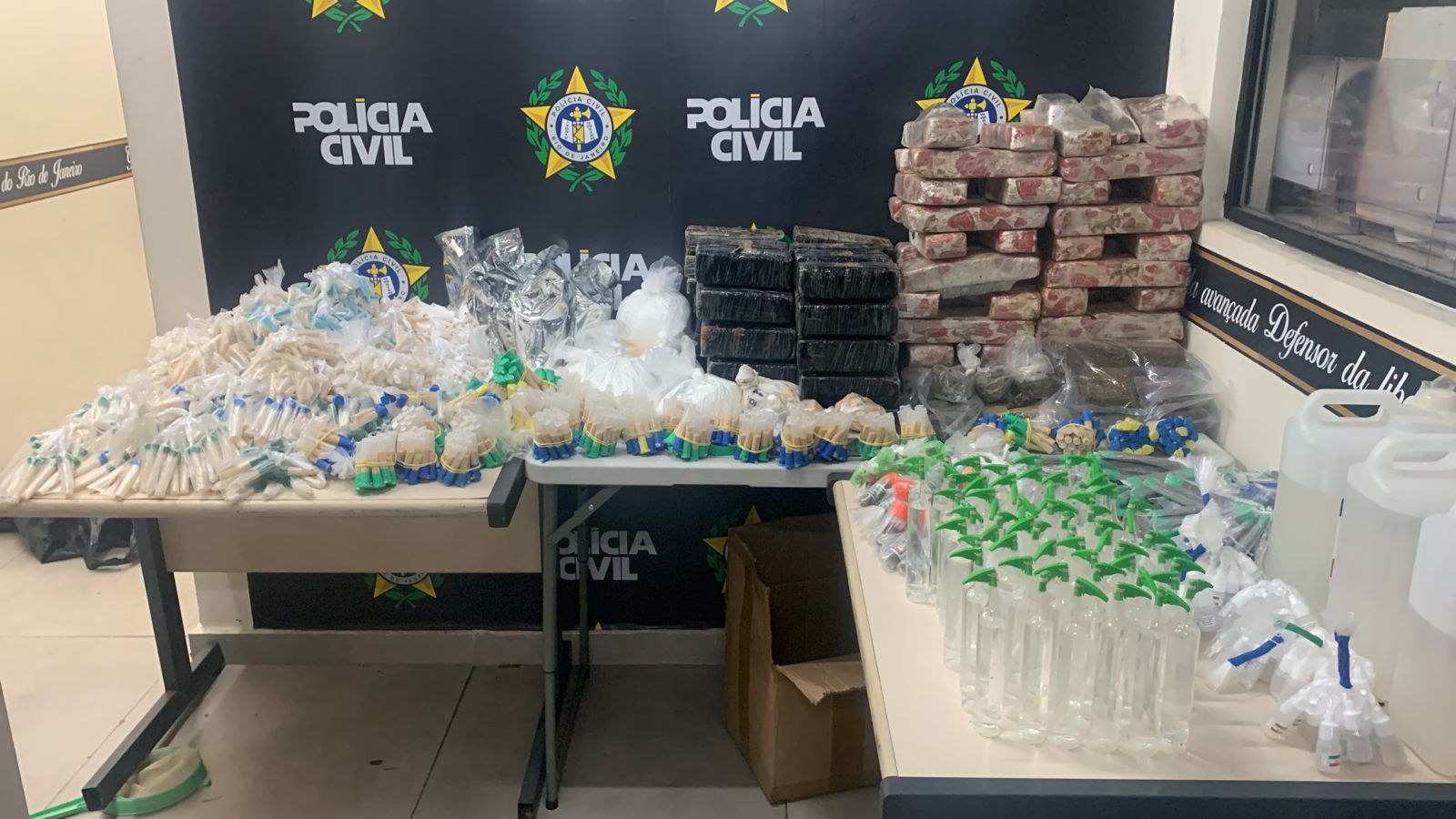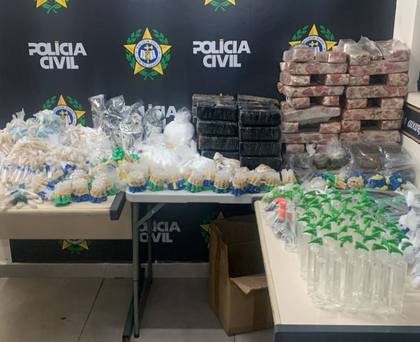 De acordo com a Polícia Civil, na residência foram encontradas uma grande quantidade de drogas. Foram encontrados, em dois tonéis, 57 tabletes de maconha prensada, cada uma pesando 1 kg. Além da maconha, os agentes encontram 41 tabletes de cocaína, também pesando 1 kg, 200 trouxinhas de maconha, 90 tubos de skunk, 156 frascos de loló, 3,1 mil pinos de cocaína de tamanhos diversos, 1.000 pedras de crack, seis sacos contendo cocaína, totalizando 10 kg, três galões de líquido para preparo de cocaína, além de milhares de tubos vazios, balanças de precisão e outros materiais do tráfico.