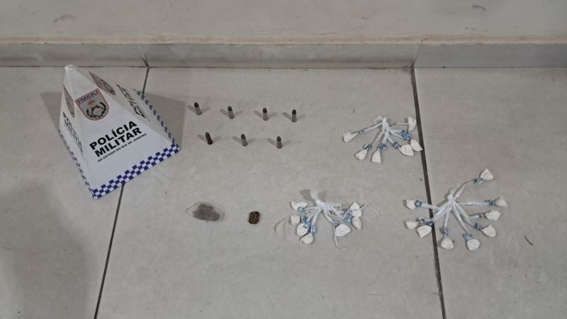 Policiais militares do Grupamento de Ações Táticas (GAT) do 10º Batalhão de Polícia Militar (BPM) apreenderam drogas e munições na noite de quarta-feira, 11, durante uma ação no bairro Varginha, em Valença. O material foi localizado na residência de um jovem de 19 anos, que já havia sido preso no dia anterior como um dos suspeitos de envolvimento em um homicídio ocorrido no bairro Passagem.