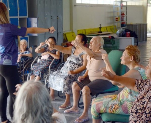 Barra Mansa – A Secretaria de Juventude, Esporte e Lazer (SMJEL) realiza às sextas-feiras, um trabalho de atividade física e socialização com idosos atendidos pela Instituição de Longa Permanência (ILPI) – Vila Vicentina, no bairro Ano Bom. Nesta sexta (14), dez idosos participaram da ação feita pela professora de educação física da Pasta, Gabriela Fonseca. A unidade conta com cerca de 40 idosos.