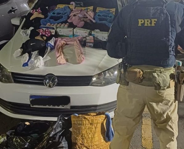 Dentro do automóvel, os policiais encontraram sacolas plásticas com roupas, acessórios e produtos de perfumaria. Muitos itens ainda tinham dispositivos antifurto.