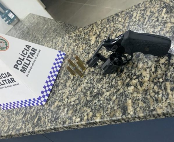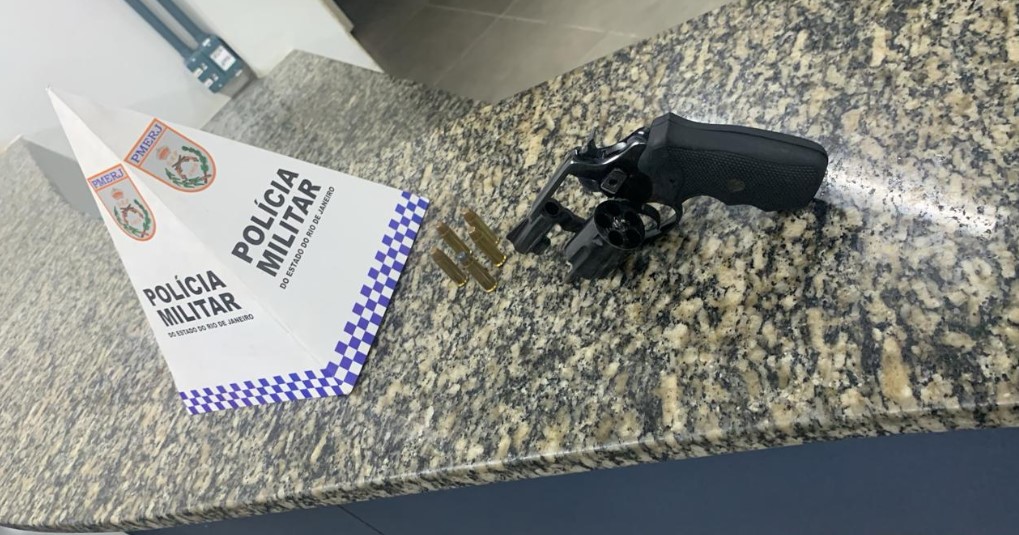 Os policiais identificaram o homem a partir de uma denúncia. Ele não portava a arma no momento em que foi abordado, mas indicou onde havia escondido o revólver calibre 38, encontrado com cinco munições. A prisão em flagrante foi confirmada na delegacia de Resende. (Foto: Polícia Militar)