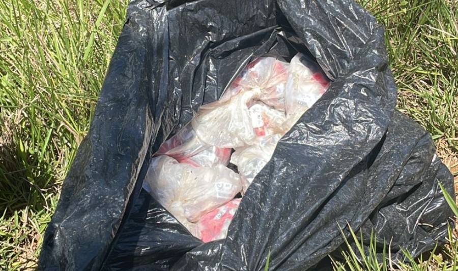 No entanto, os policiais notaram que ele estrava molhado e com os pés sujos de barro e, na denúncia, constava que a droga estava escondida no morro nos fundos da casa. Os agentes conseguiram localizar um saco preto escondido em um arbusto no morro.
