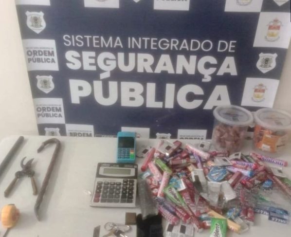 Durante o arrombamento ao quiosque, o bando utilizou uma pedra grande, chegando a danificar uma porta de enrolar de aço. O casal foi conduzido à delegacia de polícia, onde foi preso em flagrante. Com eles, foram apreendidos diversos materiais, como máquina de cartão, celular, calculadora, pé de cabra, alicate e barra de ferro, além de produtos como doces e chicletes de diferentes marcas.