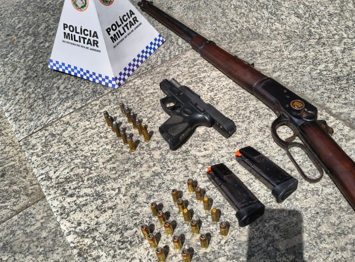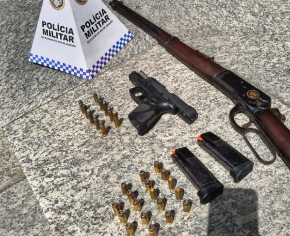 Dois homens e uma mulher foram presos em flagrante, na terça-feira (22), após a apreensão de duas armas e munições na Rua Padre José Sandrup, na Vila Julieta, em Resende. As armas apreendidas são uma pistola calibre 9mm e uma carabina calibre 38. Também foram apreendidos dois carregadores de pistola calibre .40, 18 munições do mesmo calibre e 11 para a espingarda.