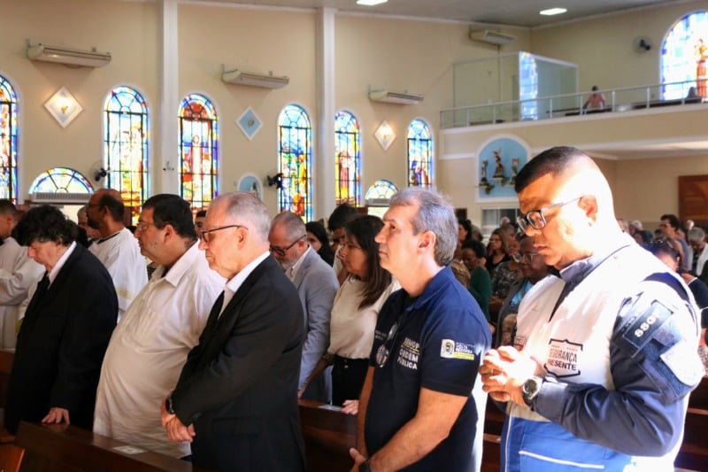 A celebração foi presidida pelo Bispo Diocesano, Dom Luiz Henrique, e concelebrada por padres da cidade. Estiveram presentes o prefeito Antônio Francisco Neto e o vice-prefeito Sebastião Faria, além de diversas autoridades da região, como os deputados estaduais Munir Neto e Jari Oliveira; o secretário municipal de Ordem Pública, tenente-coronel Luiz Henrique Barbosa; o coordenador do programa Segurança Presente, major Silvério; e o presidente da Fundação Oswaldo Aranha, Eduardo Prado.