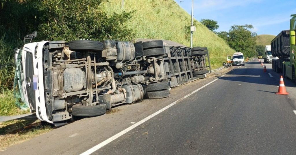 Carreta tomba na Dutra em Floriano e interdita apenas o acostamento